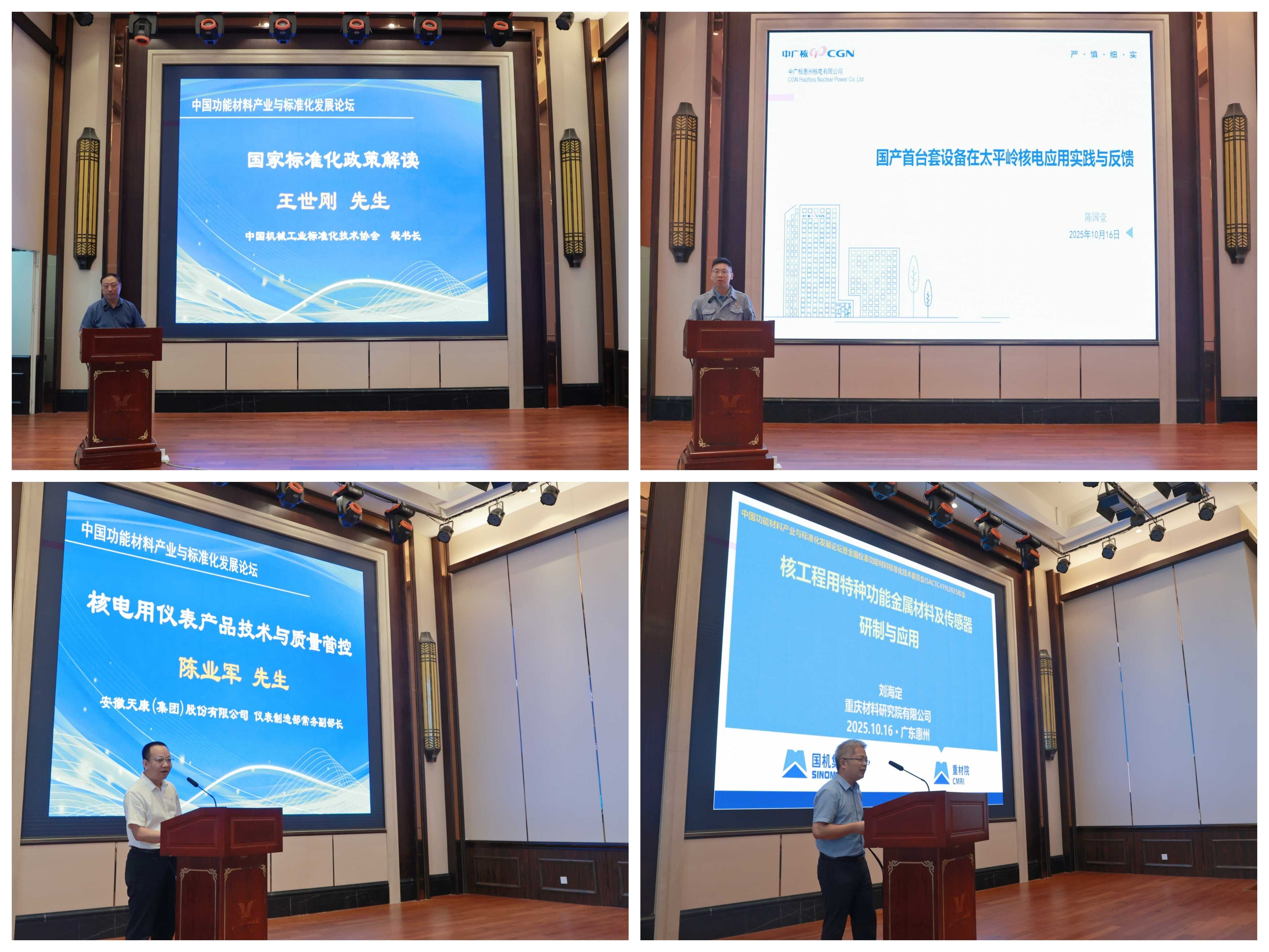 ????論壇主旨環節,王世剛秘書長進行了標準宣貫,闡述了我國標準化工作現狀,并對標準立項申報要求和程序進行了詳細解讀。隨后,中廣核惠州核電有限公司陳國壹科長、安徽天康(集團)股份有限公司陳業軍副部長、重慶材料研究院有限公司劉海定總經理助理等3位業內專家分別以《國產首臺套設備在太平嶺核電應用實踐與反饋》、《核電用儀表產品技術與質量管控》、《核工程用特種功能金屬材料及傳感器研制與應用》為題進行分享交流,展示功能材料在核電領域的前沿成果與寶貴經驗,生動闡釋了功能材料推動核能產業安全、高效、可持續發展的重要價值。